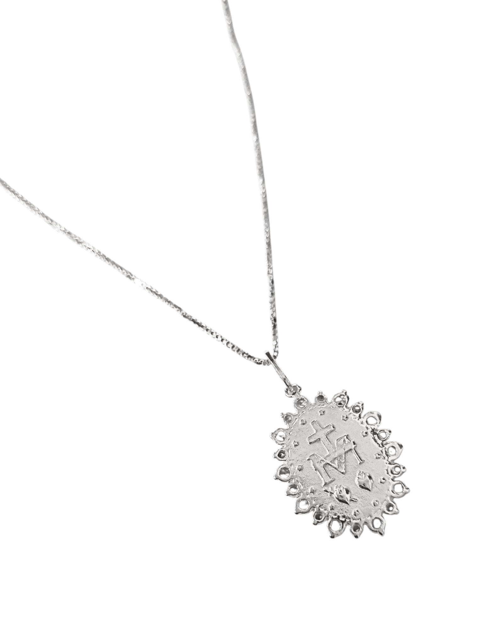 • Gargantilha Nossa Senhora das Graças com Bordas Cravejadas em Zircônia em Prata de Lei 925