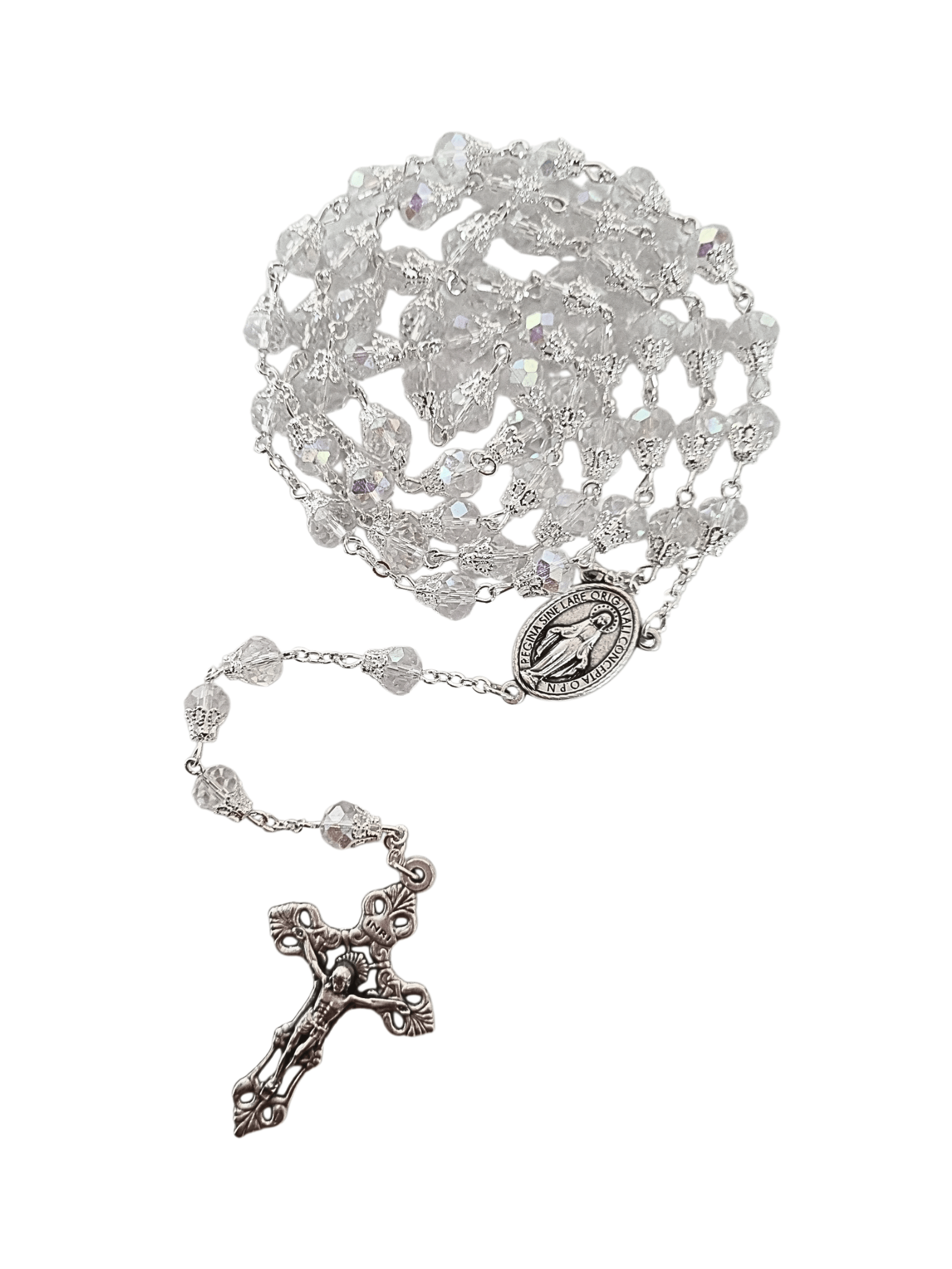 • Terço Italiano de Cristal de Vidro Transparente com Tulipa 8 mm