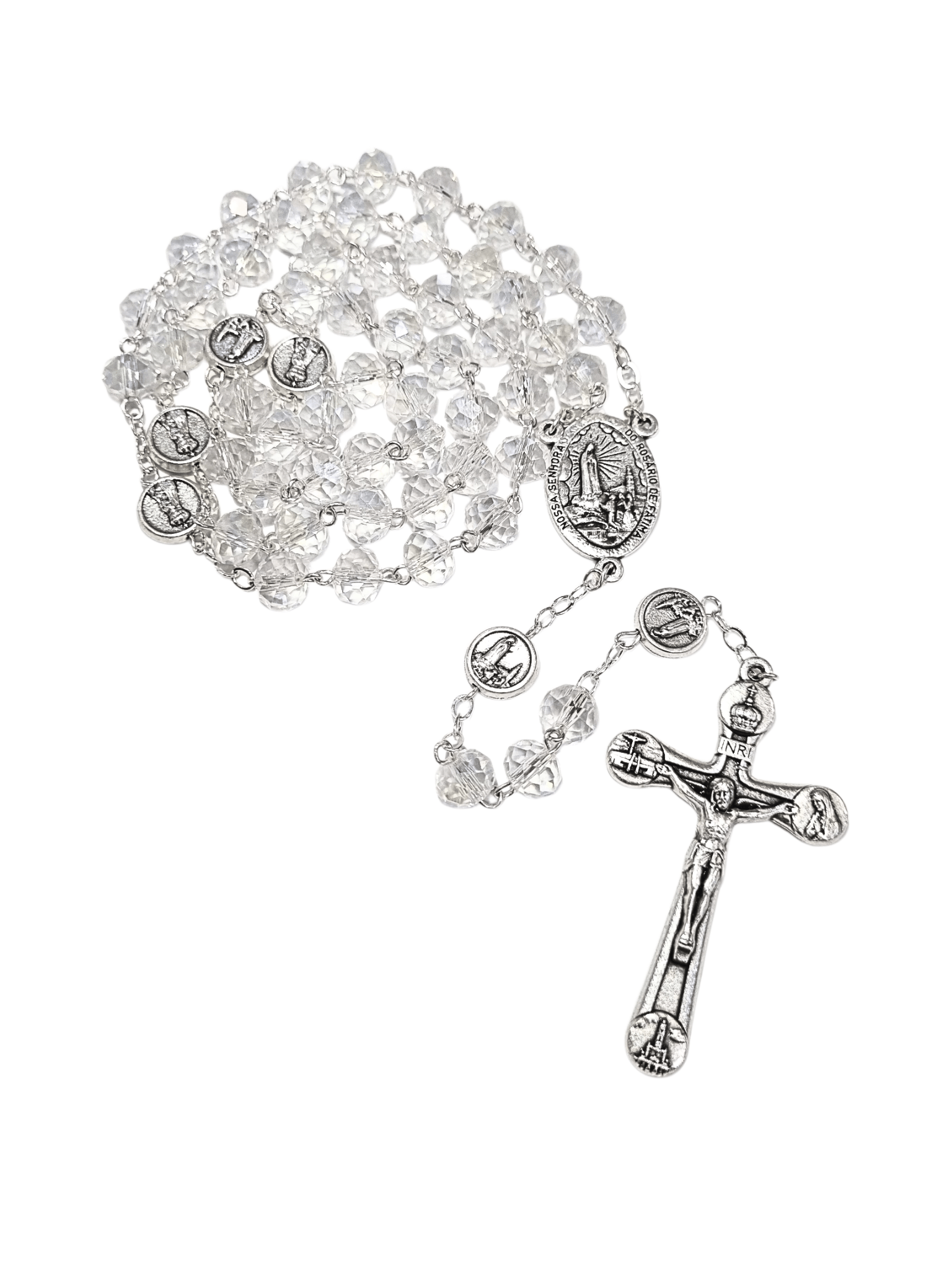 • Terço de Cristal Donut Transparente de Nossa Senhora de Fátima Feito em Portugal