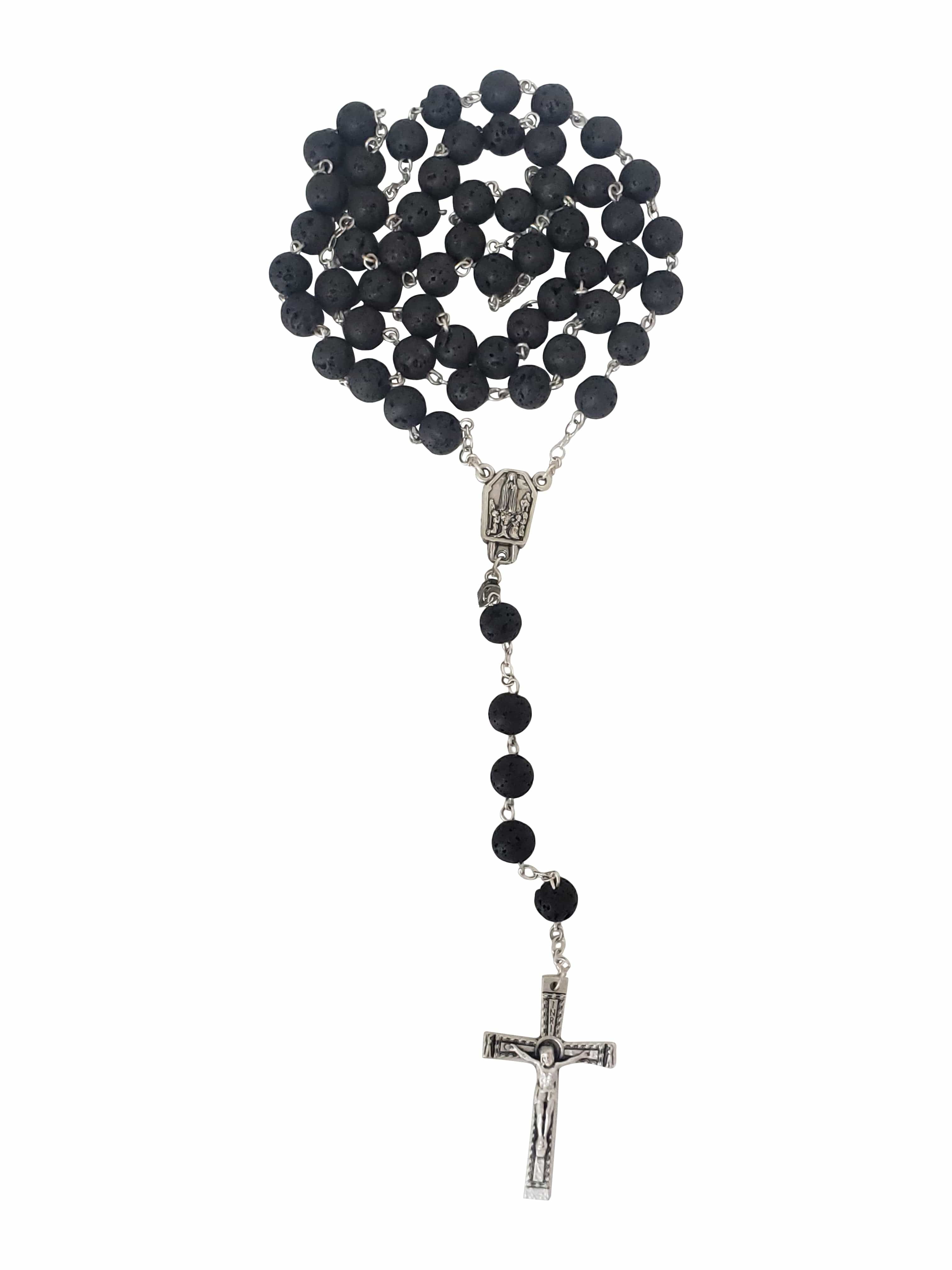 Este lindo terço importado de Portugal, tem suas contas feitas com pedra natural nomeada de Pedra Vulcânica.
