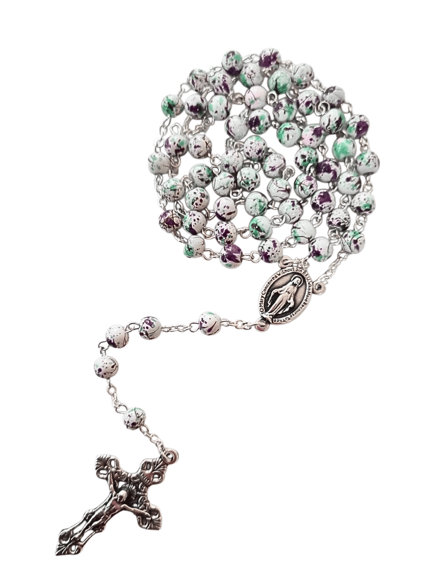 • Terço Italiano Marmorizado Branco 6 mm