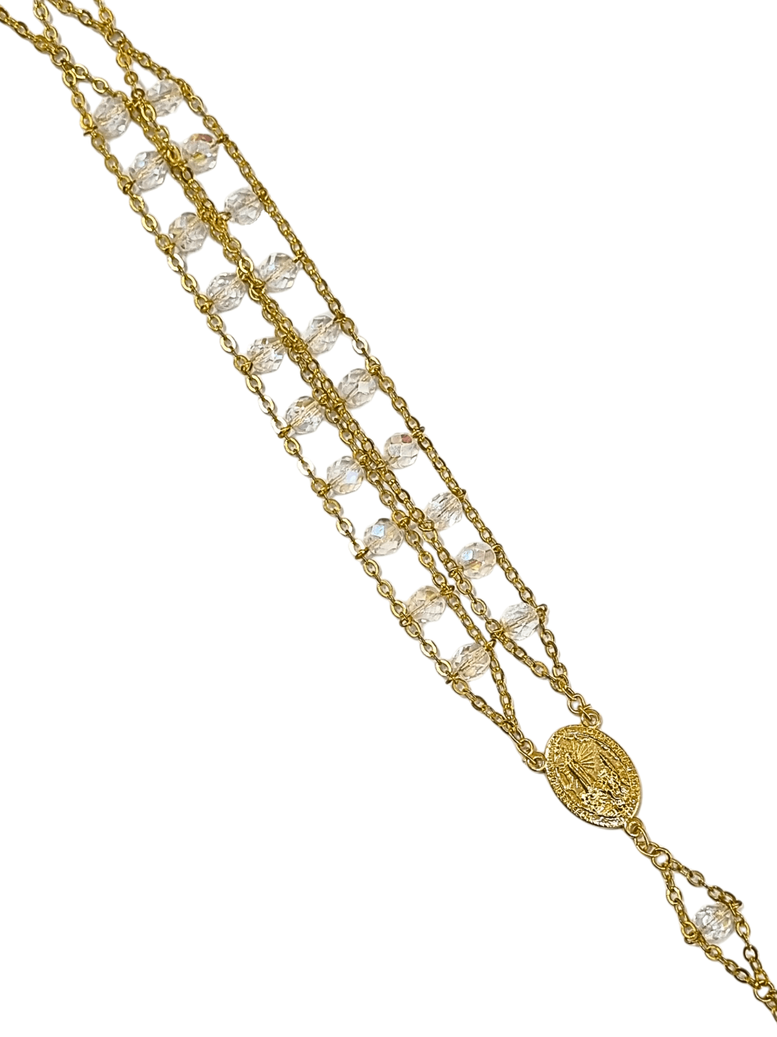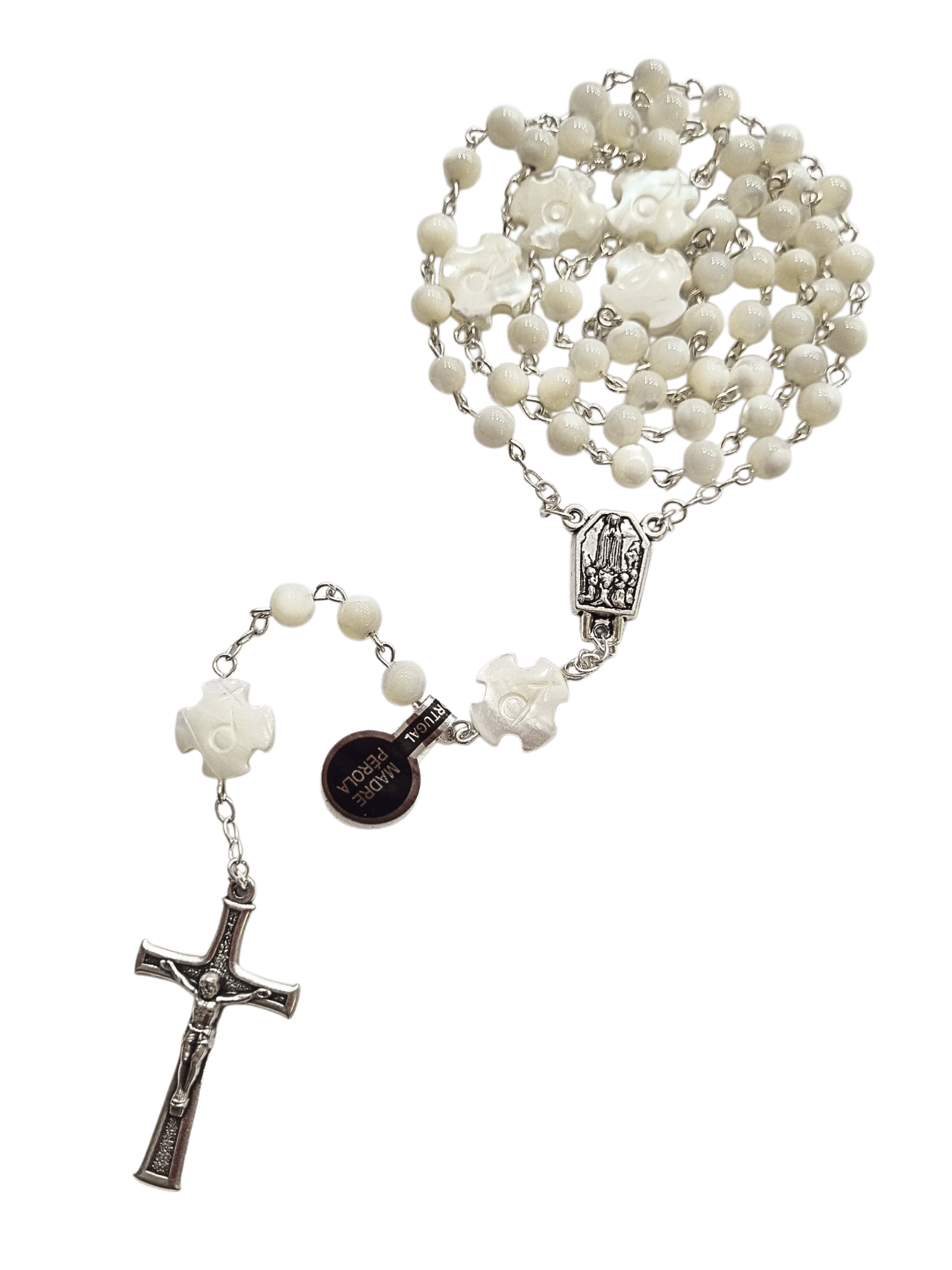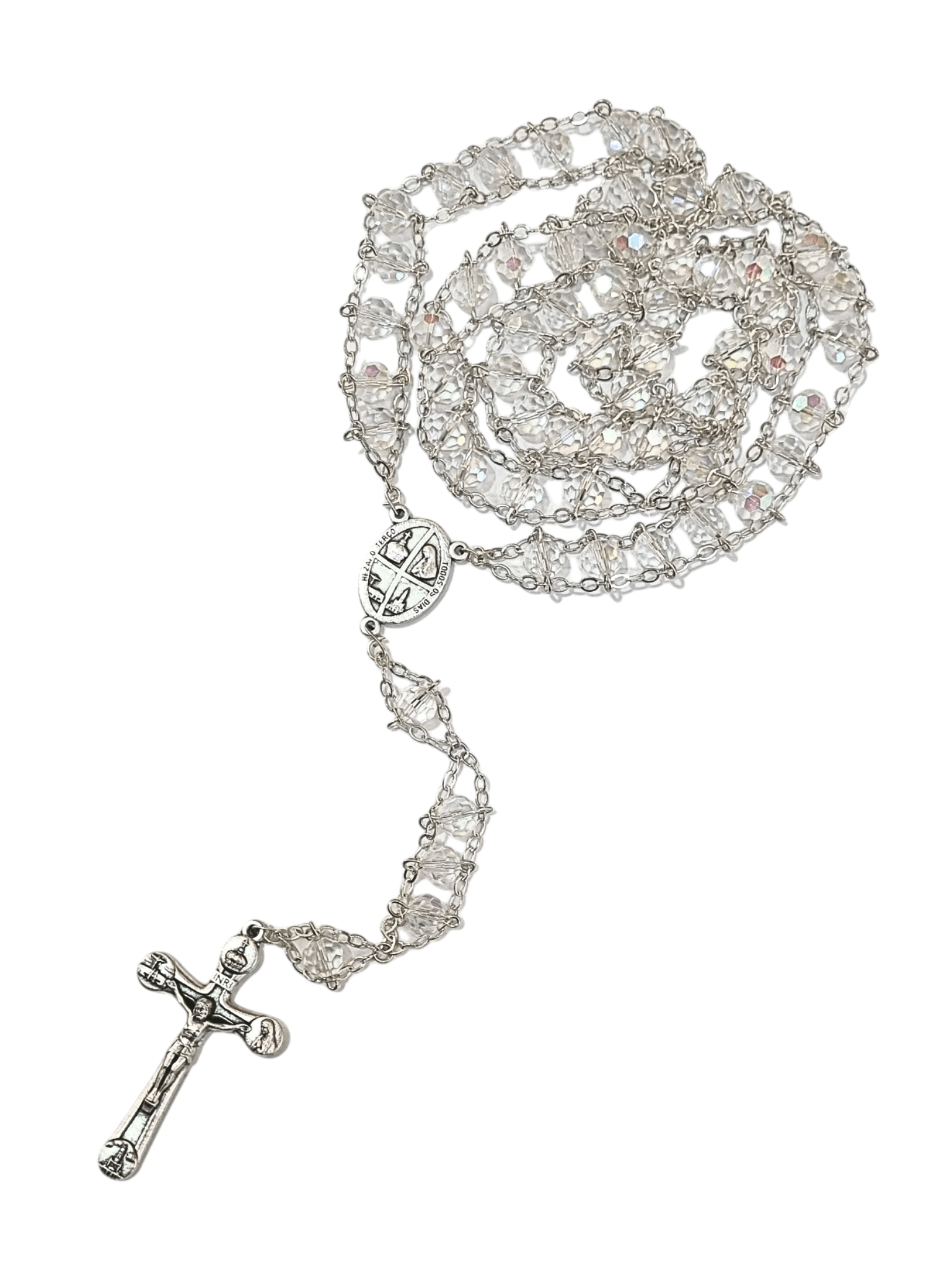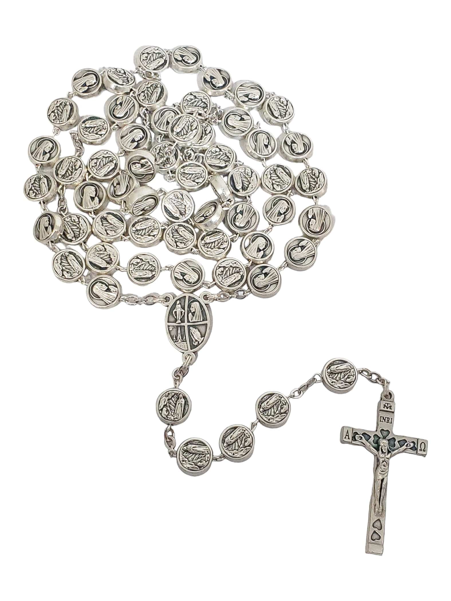 O Terço é composto de uma corrente com contas, crucifixo e medalha, dividido da seguinte forma:
